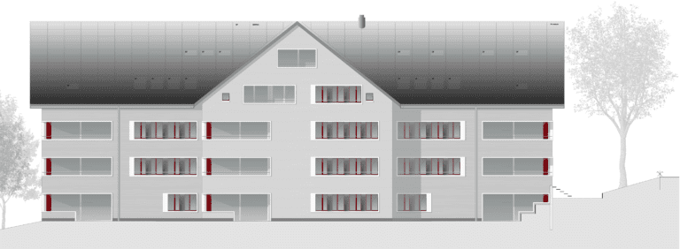 Im alten Dorfkern von Mettmenstetten fallen abgewinkelte, mit Steildächern bebaute Häuser und vorgelagerten Plätzen sowie kleinen Gärten auf. Heller, meist weisser Verputz, dunklere Fenstereinfassungen und rotes Holzwerk in allen Facetten zieren die Fassaden. Es sind diese Elemente, die die neu entstehende Bahnhofstrasse 4 charakterisieren sollen.