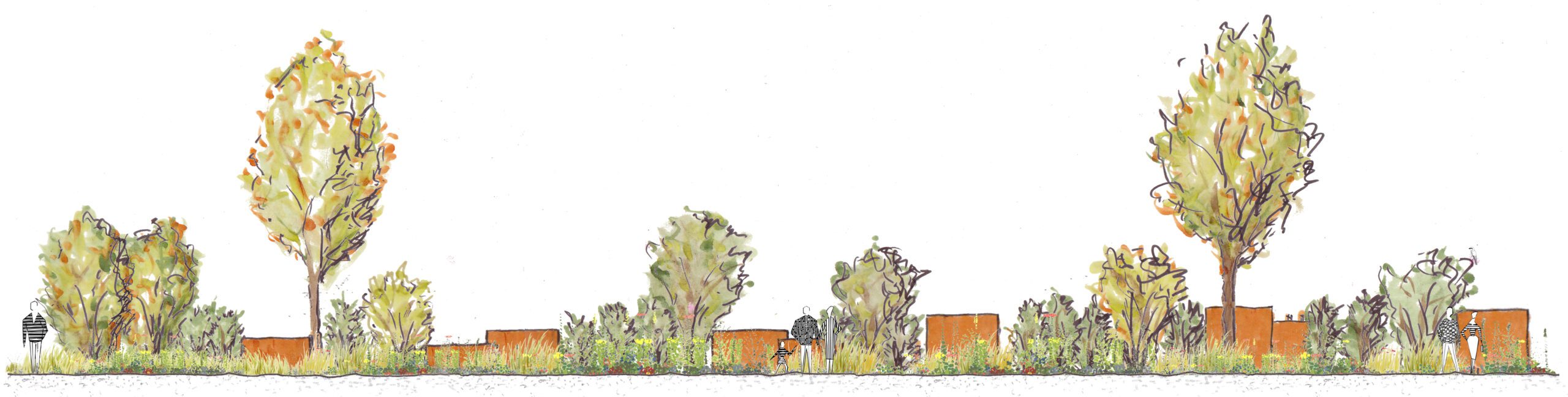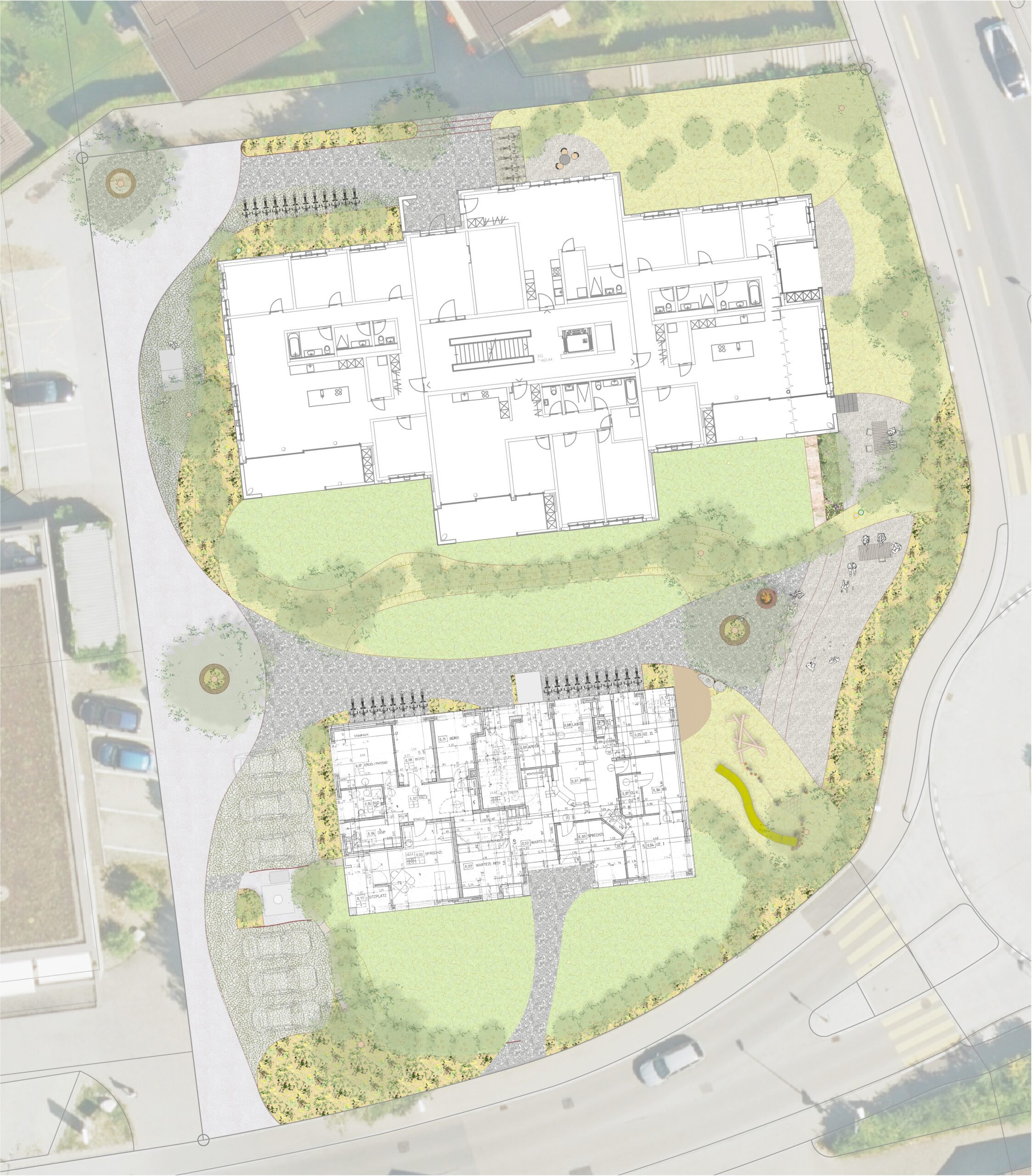 Die angrenzenden Bereiche schaffen es dank multifunktionaler Materialisierung und Ausstattung, sowohl eine vielfältige, pulsierende als auch ruhigere Belebung aufzunehmen. Nebst Spielstrasse, Pingpong-Bereich und Wiesenfläche bildet der gemeinsam nutzbare Aussenraum mit der abgetreppten Arena das Herzstück des Quartiers. Hier trifft man sich zwischen duftenden Kräutern und hat die Gelegenheit zum Austausch, gemeinsamen Spielen oder gemütlichen Zusammensitzen.