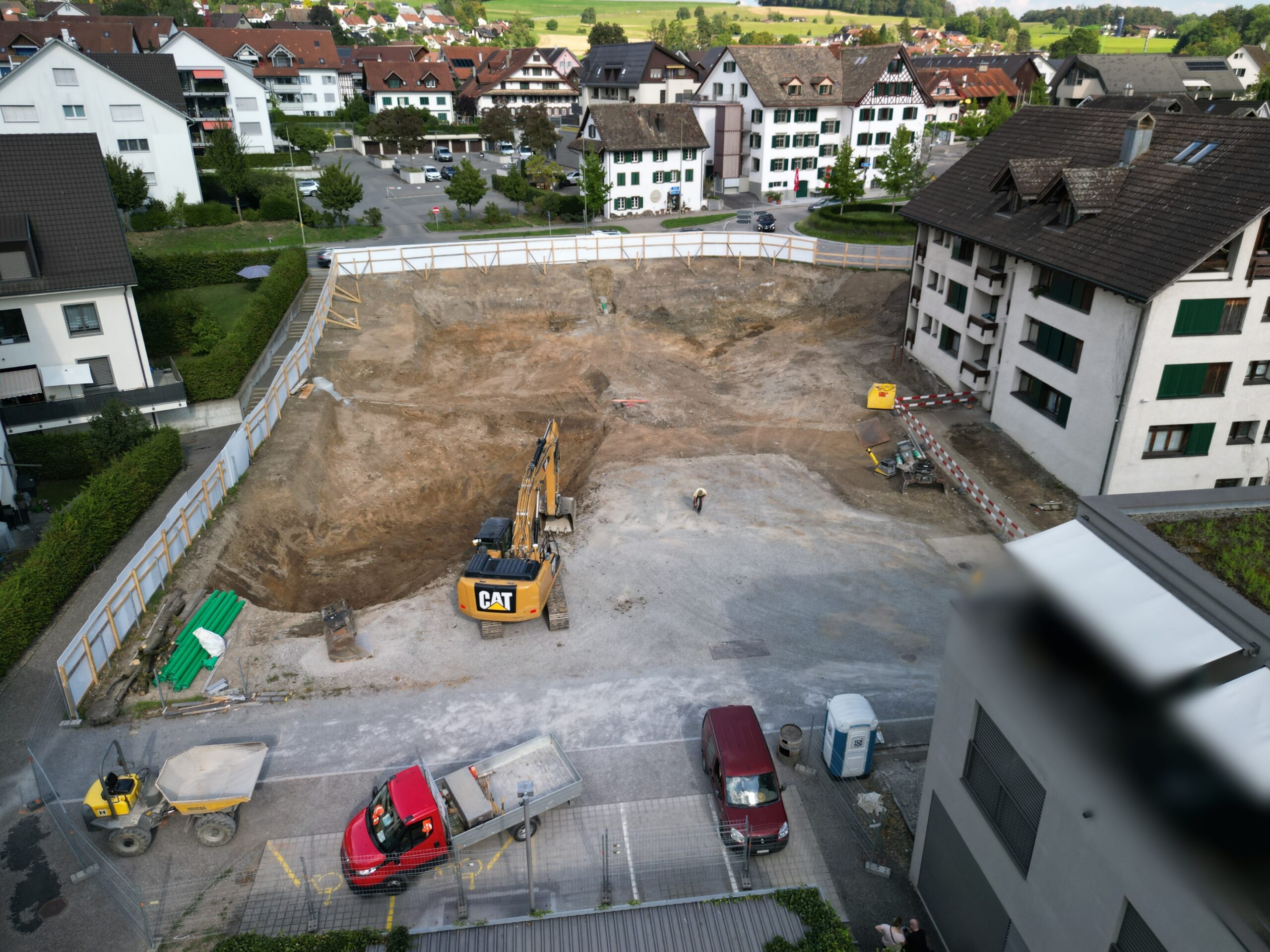 So zeigte sich der Bauplatz, als mich der Eigentümer bei einem Mittagessen fragte, ob an dieser Adresse etwas Stilvolles und «Dorfkern Verträgliches» zu bauen möglich sei. Dieses Gespräch im Sommer 2020 stellte den Beginn für unser Bauprojekt am Chreisel dar.